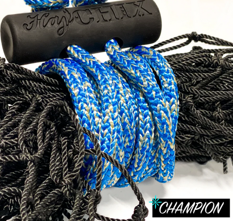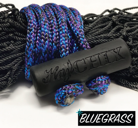 The Half Bale Original 1 3/4" Net comes with the new ✧REFLECTIVE✧ edition rope! Have you ever lost a net out in the pasture? Or have you had trouble finding it in the dark barn or horse trailer? Use your cell phone's flashlight and it will shine bright so it's easier for you to find!